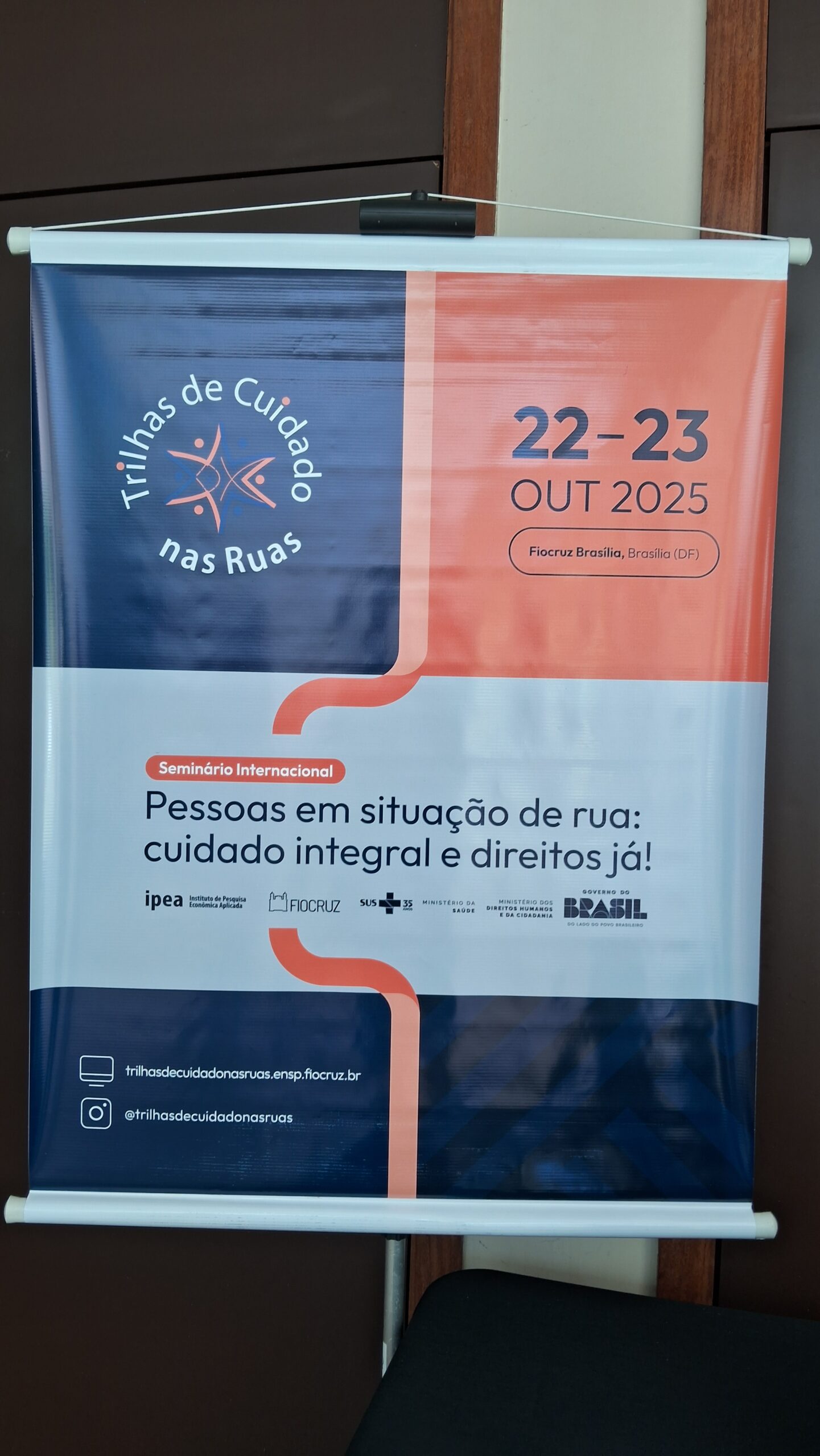 No mesmo movimento, relatamos o Seminário Internacional “População em Situação de Rua: cuidado integral e direitos já!” (Fiocruz Brasília, 22–23/10/2025), onde entregamos o projeto à Ministra dos Direitos Humanos e dialogamos com gestores públicos, pesquisadores e movimentos sociais.