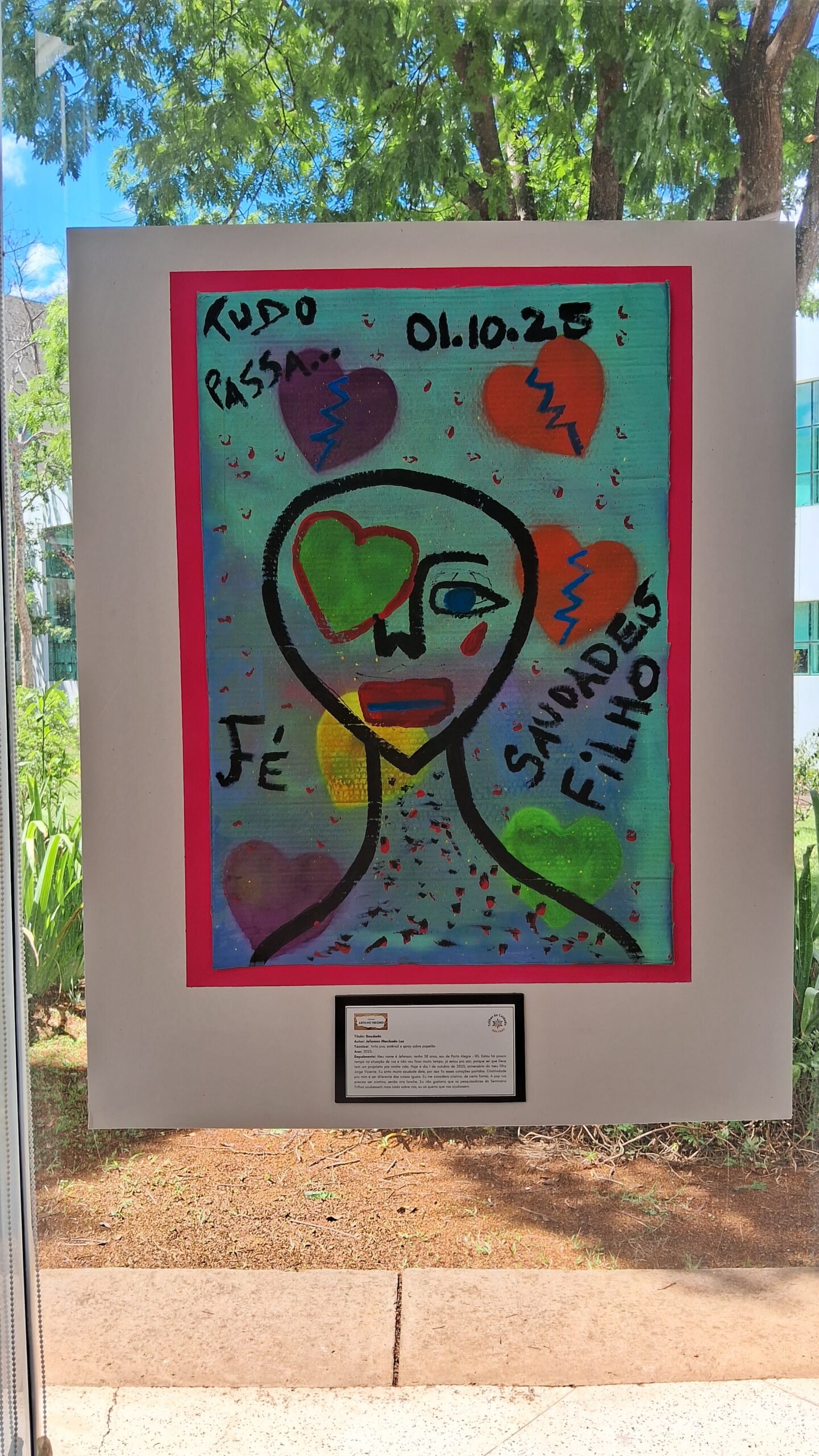 Depoimento: “Meu nome é Jeferson, tenho 28 anos, sou de Porto Alegre – RS. Estou há pouco tempo na situação de rua e não vou ficar muito tempo, já estou pra sair, porque sei que Deus tem um propósito pra minha vida. Hoje é dia 1 de outubro de 2025, aniversário do meu filho Jorge Vicente. Eu sinto muita saudade dele, por isso fiz esses corações partidos. Criatividade pra mim é ser diferente das coisas iguais. Eu me considero criativo, de certa forma. A pop rua precisa ser criativa, senão vira lanche. Eu não gostaria que os pesquisadores do Seminário Trilhas soubessem mais nada sobre nós, eu só queria que nos ajudassem.”